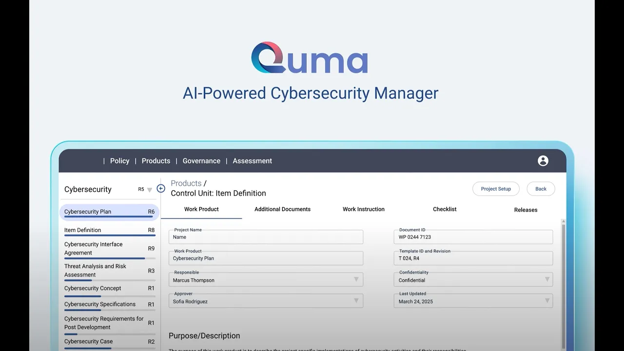This easy-to-use Excel is designed to get you started with a solid approach for your product cybersecurity. It effortlessly transitions to our automated solution whenever you’re ready.